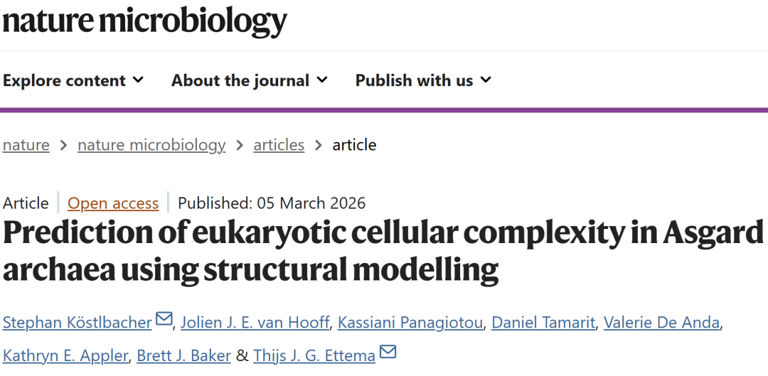Köstlbacher, S., van Hooff, J.J.E., Panagiotou, K. et al. Prediction of eukaryotic cellular complexity in Asgard archaea using structural modelling. Nat Microbiol 11, 747–758 (2026).