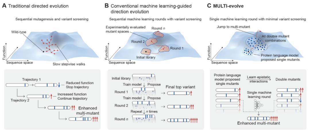 研究提出了一个能够系统性改造多突变体的快速进化框架MULTI-evolve。该方法结合了蛋白质语言模型或现有功能数据与上位效应建模,以预测协同突变组合。将MULTI-evolve应用于三种蛋白质,仅通过单轮机器学习引导的定向进化就实现了高达10倍的性能提升。MULTI-evolve为多种蛋白质类型和功能的端到端多突变体工程提供了一种精简高效的方法。