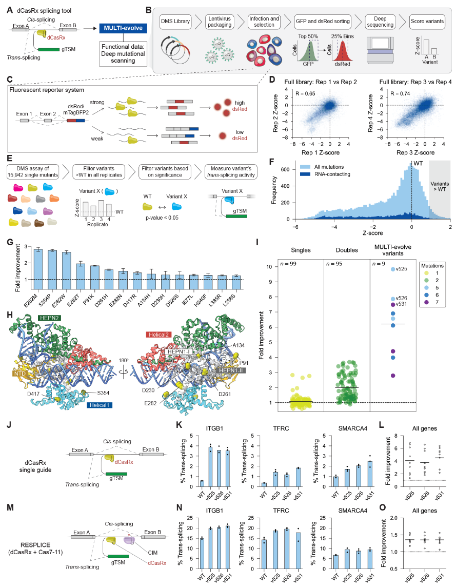 图4 使用MULTI-evolve工程化基于dCasRx的剪接工具