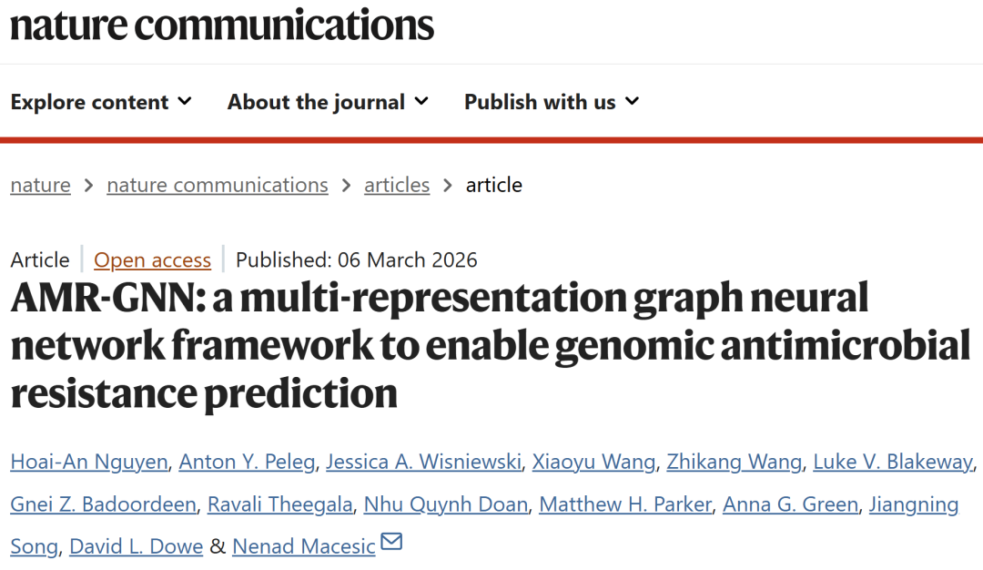 Nguyen, HA., Peleg, A.Y., Wisniewski, J.A. et al. AMR-GNN: a multi-representation graph neural network framework to enable genomic antimicrobial resistance prediction. Nat Commun (2026).