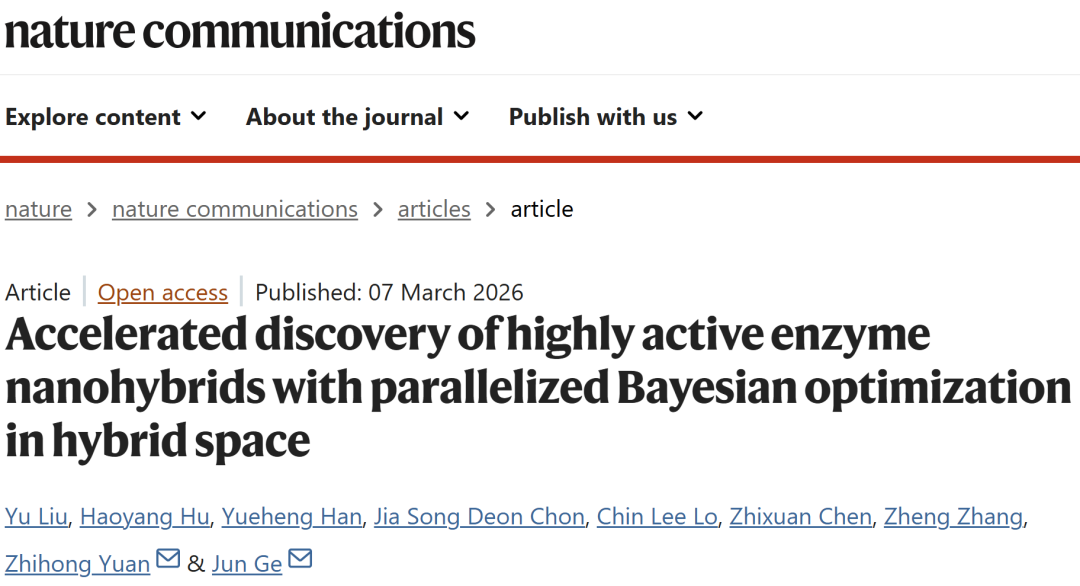 Liu, Y., Hu, H., Han, Y. et al. Accelerated discovery of highly active enzyme nanohybrids with parallelized Bayesian optimization in hybrid space. Nat Commun (2026).