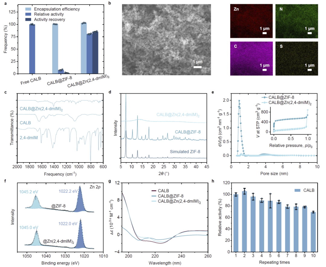 图7|CALB@Zn(2,4-dmIM)₂纳米杂化体的结构表征。
