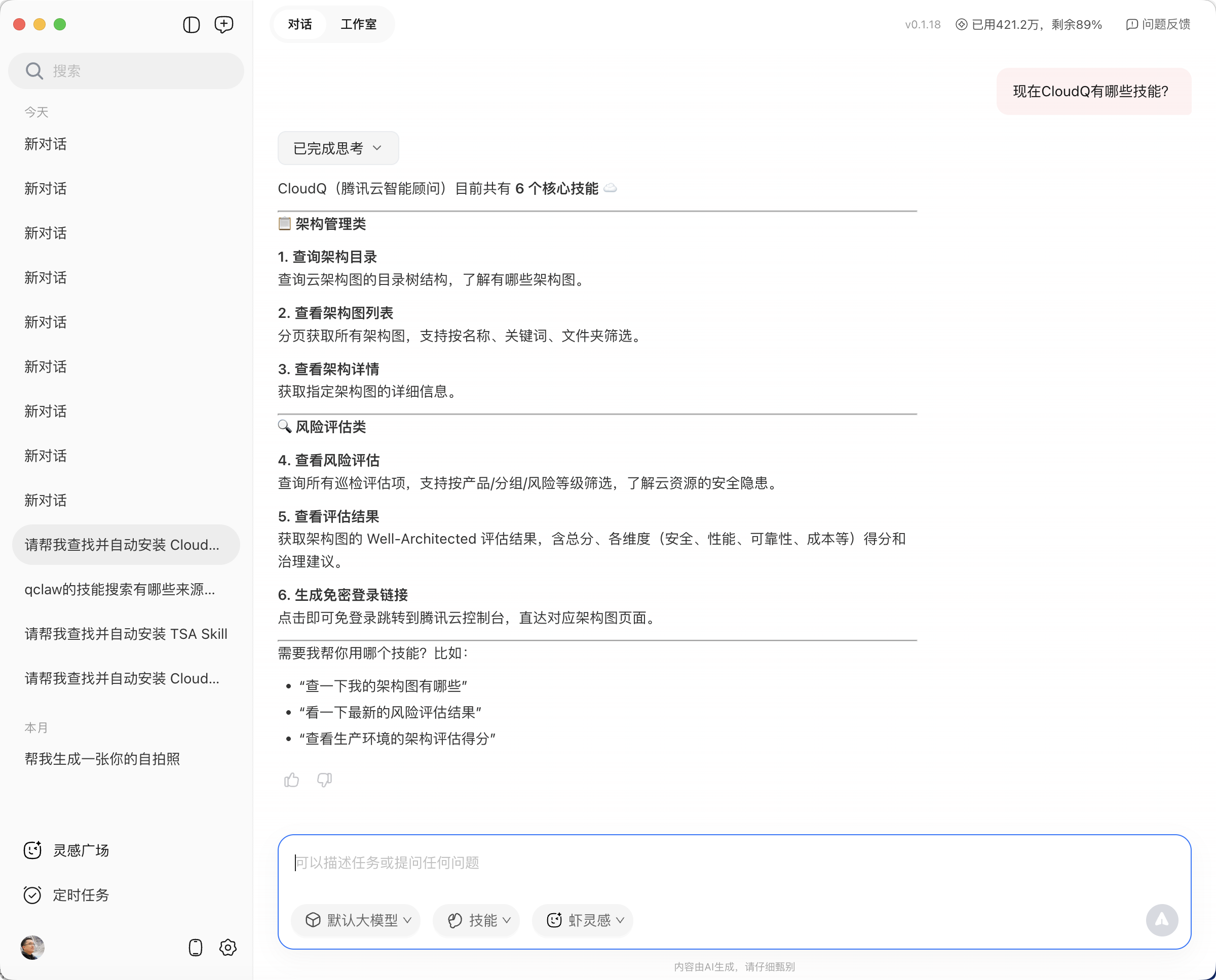 完成配置后即可执行CloudQ各项技能: