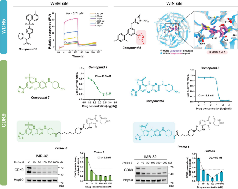 图二:DeepDegradome靶向WDR5与CDK9开展PPI阻断剂和PROTAC生成应用示例。