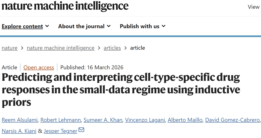 Alsulami, R., Lehmann, R., Khan, S.A. et al. Predicting and interpreting cell-type-specific drug responses in the small-data regime using inductive priors. Nat Mach Intell (2026).