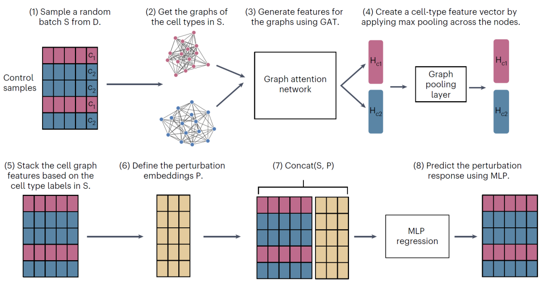 图1:PrePR-CT:一种基于图结构的深度学习方法,用于预测单细胞扰动响应。