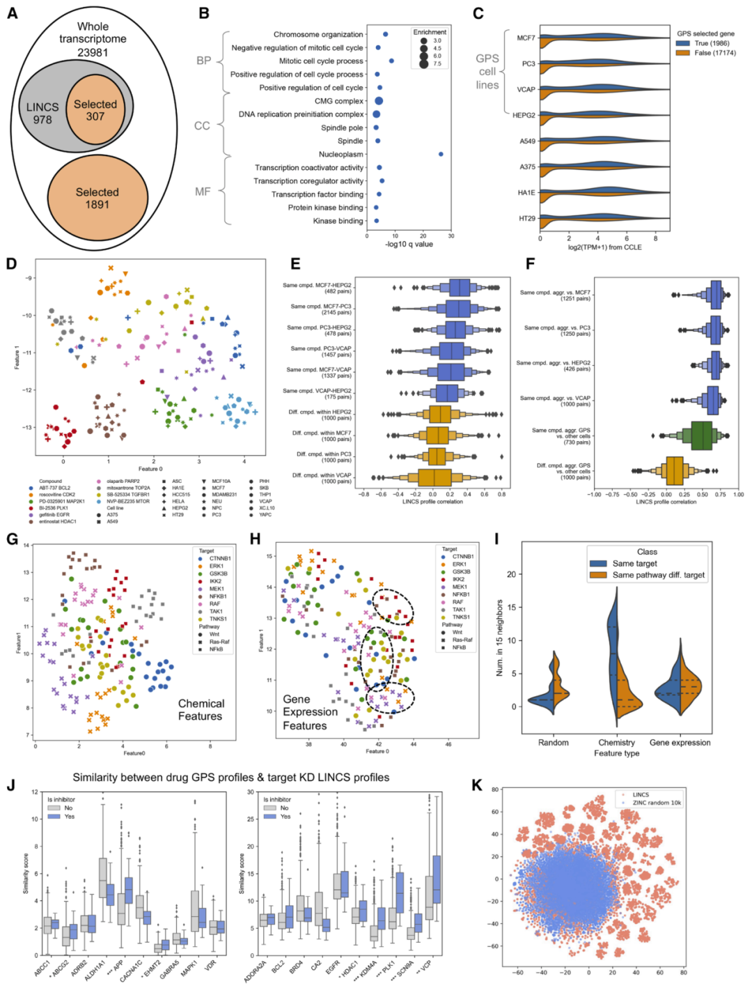 图2:GPS推断的化合物转录组特征所揭示的生物学信息。
