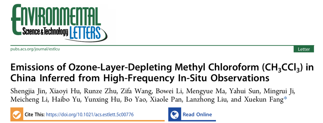 近日,浙江大学方雪坤团队联合中国科学院大气物理研究所、武义上黄观测站、复旦大学大气与海洋科学系/大气科学研究院、华纳创新(北京)科技有限公司等单位合作研究,在国际期刊《Environmental Science & Technology Letters》上发表了具有重要影响力的研究成果,该研究聚焦于自2013年以来,中国甲基氯仿(CH3CCl3,TCA)排放数据长期缺失的问题,这一数据空白严重影响了《蒙特利尔议定书》履约成效的科学评估,并对后续管控政策的制定有效性带来了挑战。