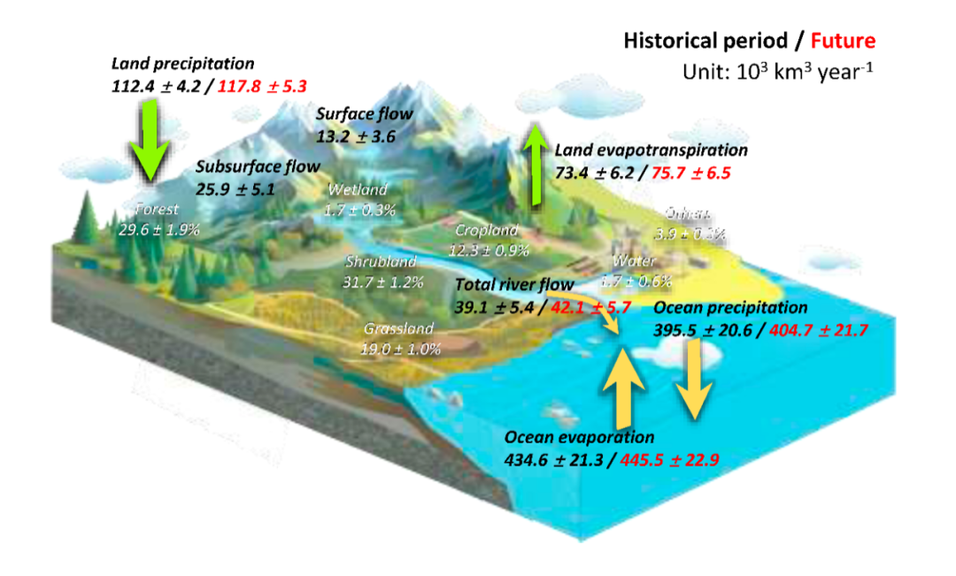 水是地球表层系统的核心要素,是链接各圈层的关键纽带。然而,全球水循环的量化尤其是河川流量与蒸散发的准确划分,长期受限于模型误差与观测不足,导致对未来水资源变化的预测存在高度不确定性。为破解这一难题,中国科学院地理科学与资源研究所张永强研究员联合国内、国际团队,创新性地融合大流域河川径流观测数据与地球系统模型,系统重构了全球水循环各分量的分配比例与未来趋势。
