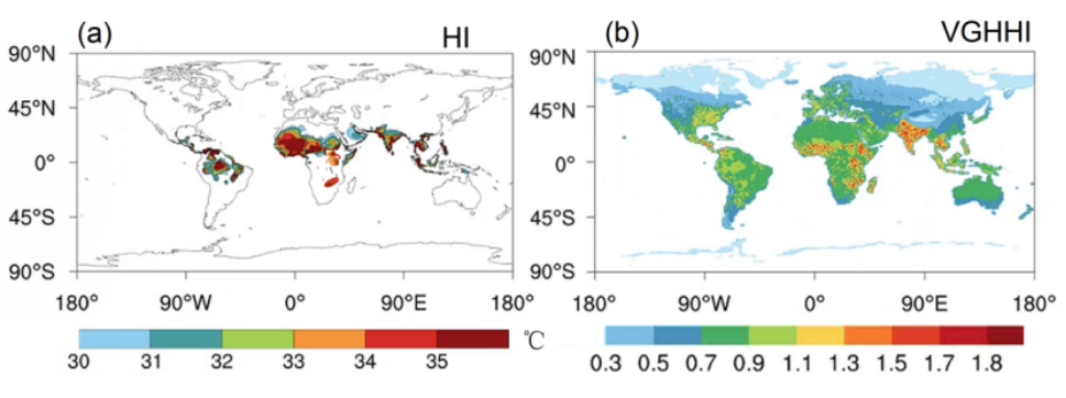 图2 全球未来湿热指数和脆弱人群湿热指数分布图