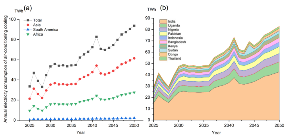近年来,全球夏季热浪显著加剧,湿热应激现已成为对人类健康的一种巨大威胁,尤其是对低收入人群。研究结果表明,印度在室内湿热风险和贫困指数的综合排名中位居首位,而前十名国家中非洲的低收入国家占多数。如果这些地区能够公平获得空调制冷服务,到2050年将消耗1652太瓦时的电力并额外产生6.07亿吨的二氧化碳。可行的缓解途径包括提高建筑围护结构的性能和增强空调系统的制冷系数(COP)——这些挑战需要新型建筑材料和下一代空调技术来实现能效提升。