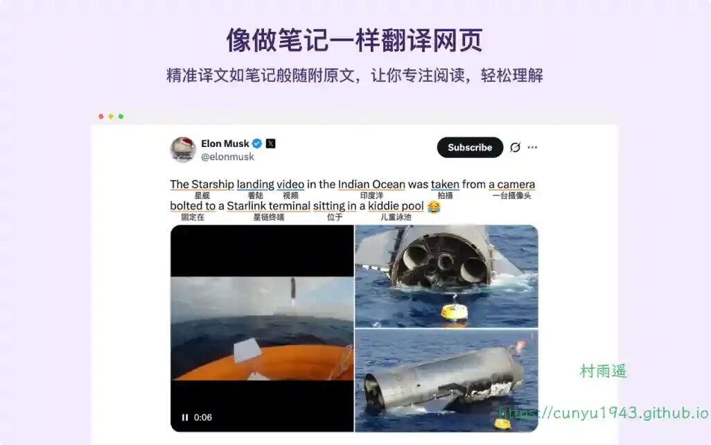 一款为外语阅读者设计的智能划词翻译插件,通过将翻译结果展示在原文下方,提供沉浸式的网页阅读体验。