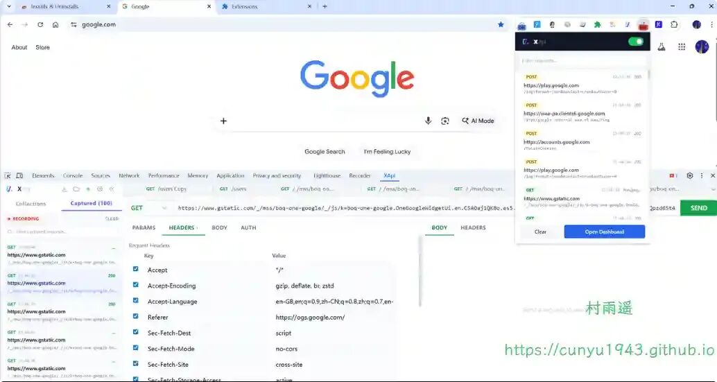支持自动捕获当前页面的 Fetch 与 XHR 网络请求,还能改写 Cookie、Origin、Referer 等字段信息,开发调试神器。