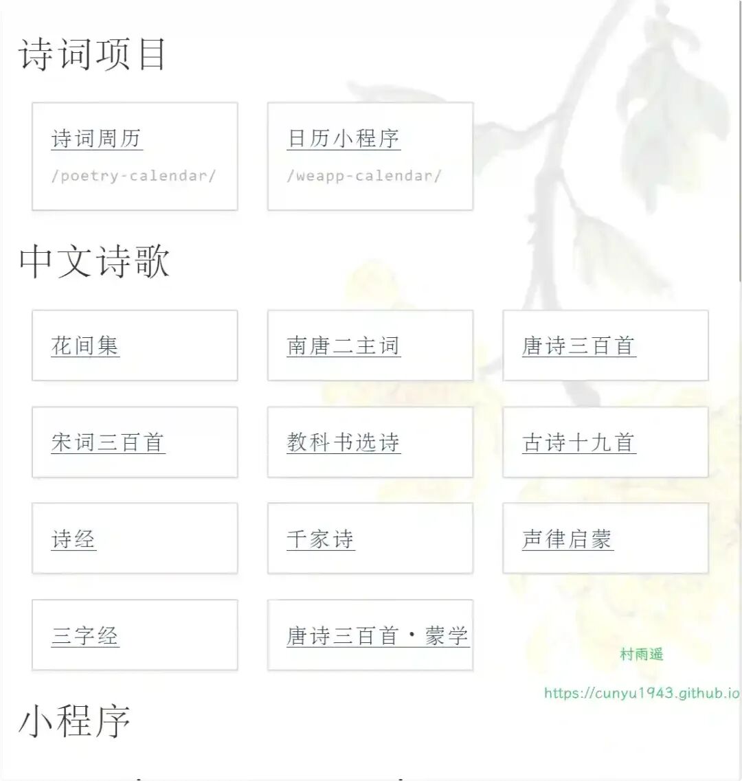 [15] 最全中文诗歌古典文集数据库: https://github.com/chinese-poetry/chinese-poetry