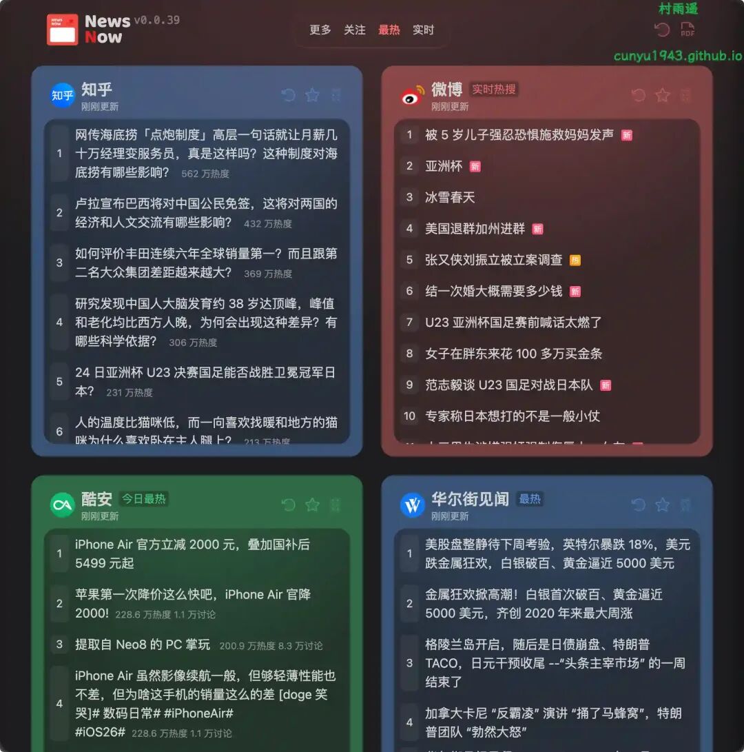 实时新闻聚合阅读器,汇集全球热点新闻,提供优雅的阅读体验