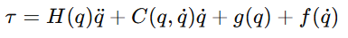 为什么默认不算摩擦?这是一个非常“工程化”的设计选择。摩擦通常不依赖线性动力学参数,摩擦模型可能是线性的,也可能是高度非线性的,很多现代机器人控制器已经在底层补偿了摩擦所以 IDS 默认设定 f(q̇) = 0,如果需要摩擦,就用专门的真实机器人实现这个设计思路非常务实:仿真优先简洁,真实机器人再追求精度。