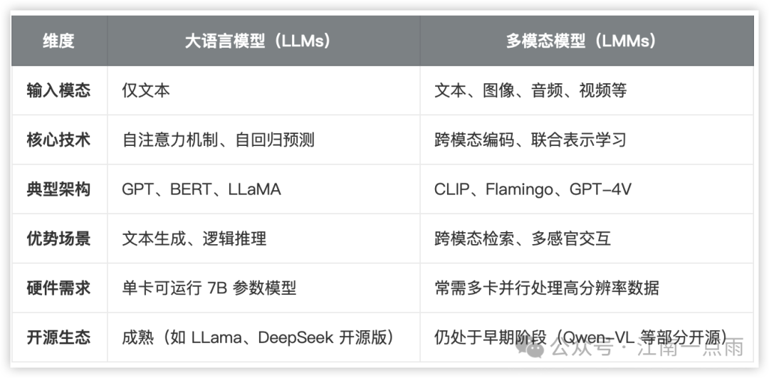 总结下,LLM 和 LMM 对比如下: