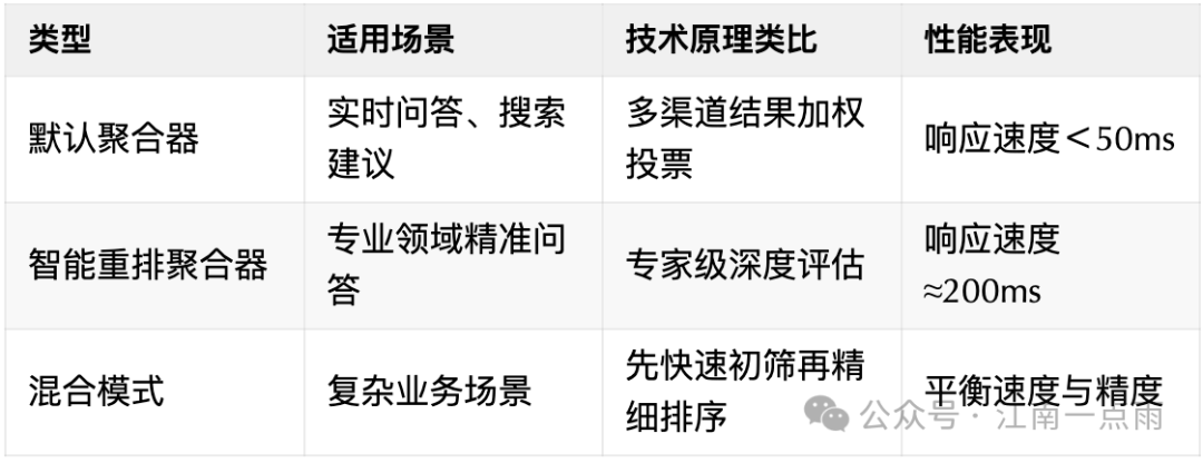 最后按总分排序。 这么做的优势是快速整合多源结果,适合实时性要求高的场景(如客服问答)
