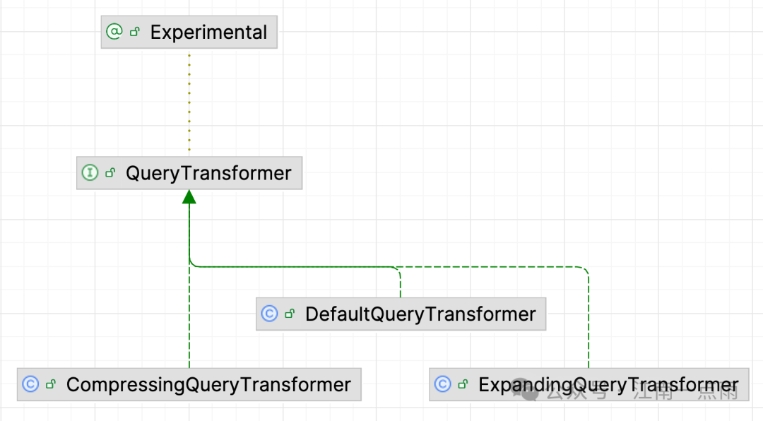 QueryTransformer 有三个不同的实现类,分别对应我们前面 1.2.1-1.2.3 小节所介绍的三种不同方案,大家可以根据自己的需求选择不同的实现。