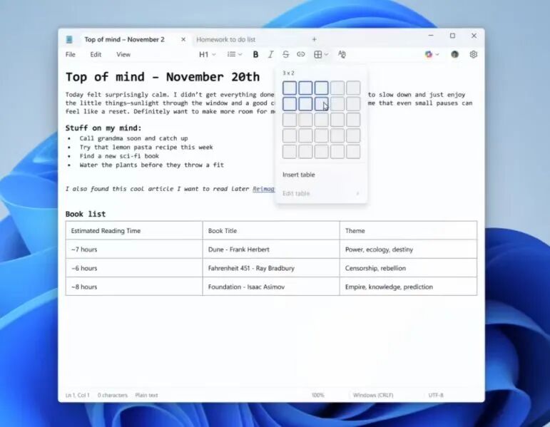 还记得那个陪伴我们无数个日夜的Windows记事本吗?这款诞生于1985年的"老古董",终于在2025年迎来了它最具革命性的更新——原生表格功能正式上线!