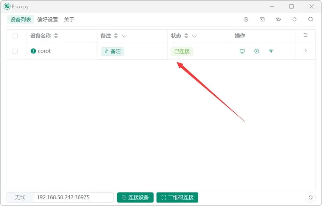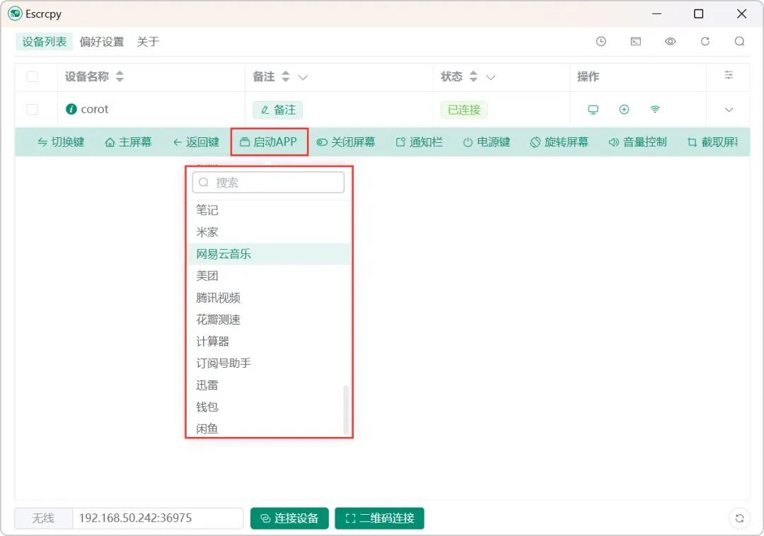 3. 在 Escrcpy 中连接