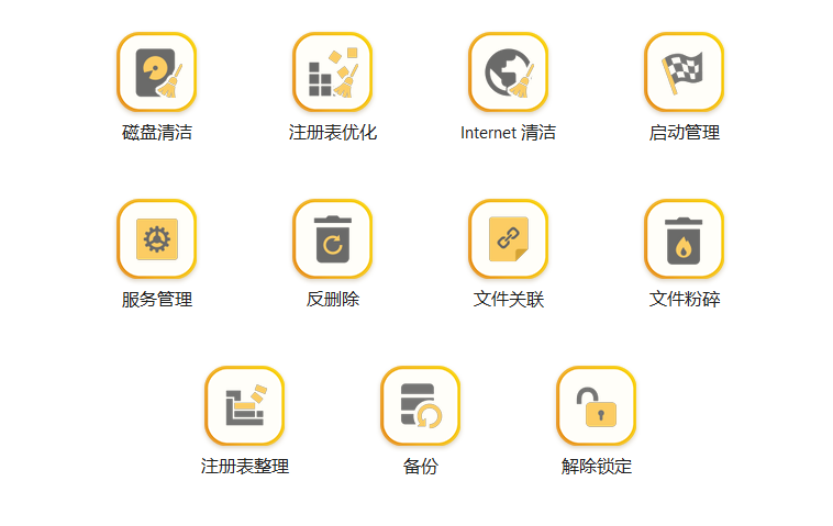 启动项管理:管理开机自启动程序反删除:意思就是数据恢复解除锁定:解放软件的后台占用,删除流氓程序Internet清洁:抹除上网痕迹......