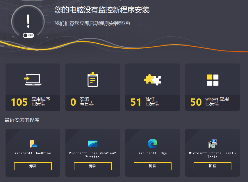 第一次运行该软件时,它会自动检测电脑中除了系统文件外,所有第三方应用程序、浏览器插件、以及 Windows自带的应用程序。