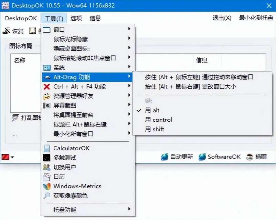 该软件DesktopOK是一款帮助我们保存桌面图标位置的小工具。 它可以备份桌面布局并一键恢复。 单文件绿色软件,只有500KB大小,而且完全免费,无广告,无后台,非常良心。