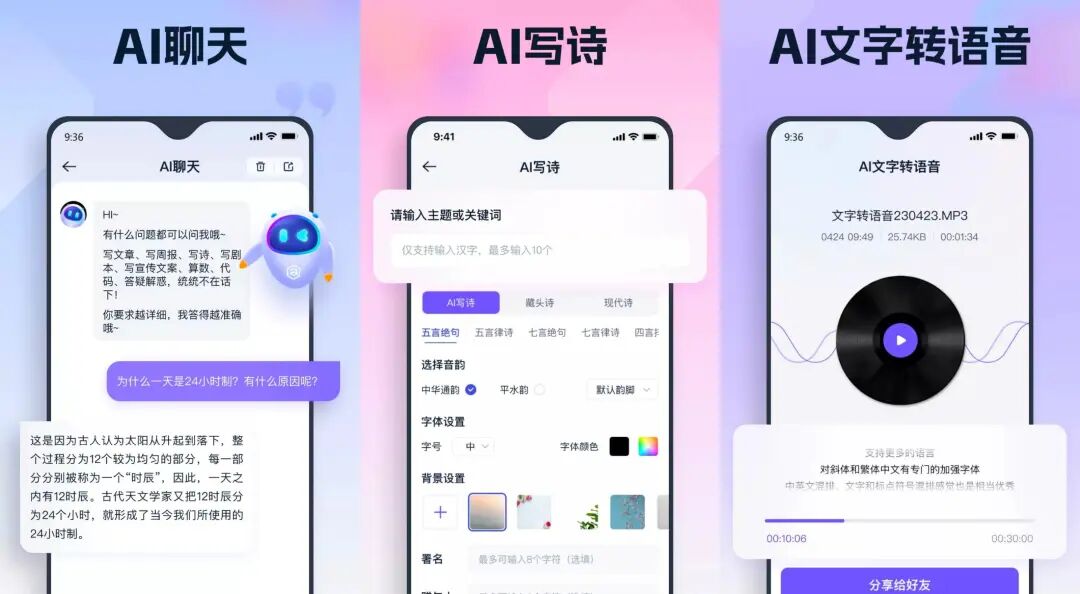 这是一款提供AI聊天、AI写作、AI去水印、AI照片修复、AI人像抠图等多项功能的实用工具,界面简洁,通过文字对话的形式进行信息查询,可以一键生成周报日报、论文小说大纲等。