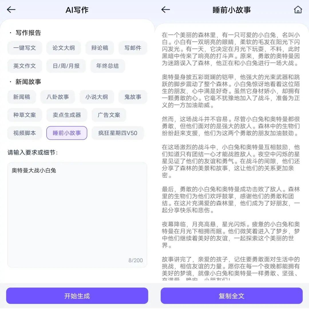 选择报告或故事类型,再输入主题、关键词、细节要求,最后点击“开始生成”就完成啦!