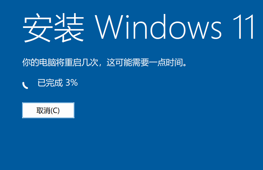 接下来就不需要任何操作了,只需要耐心等待。安装过程中电脑会自动重启几次,整个过程大约需要 30-60 分钟。