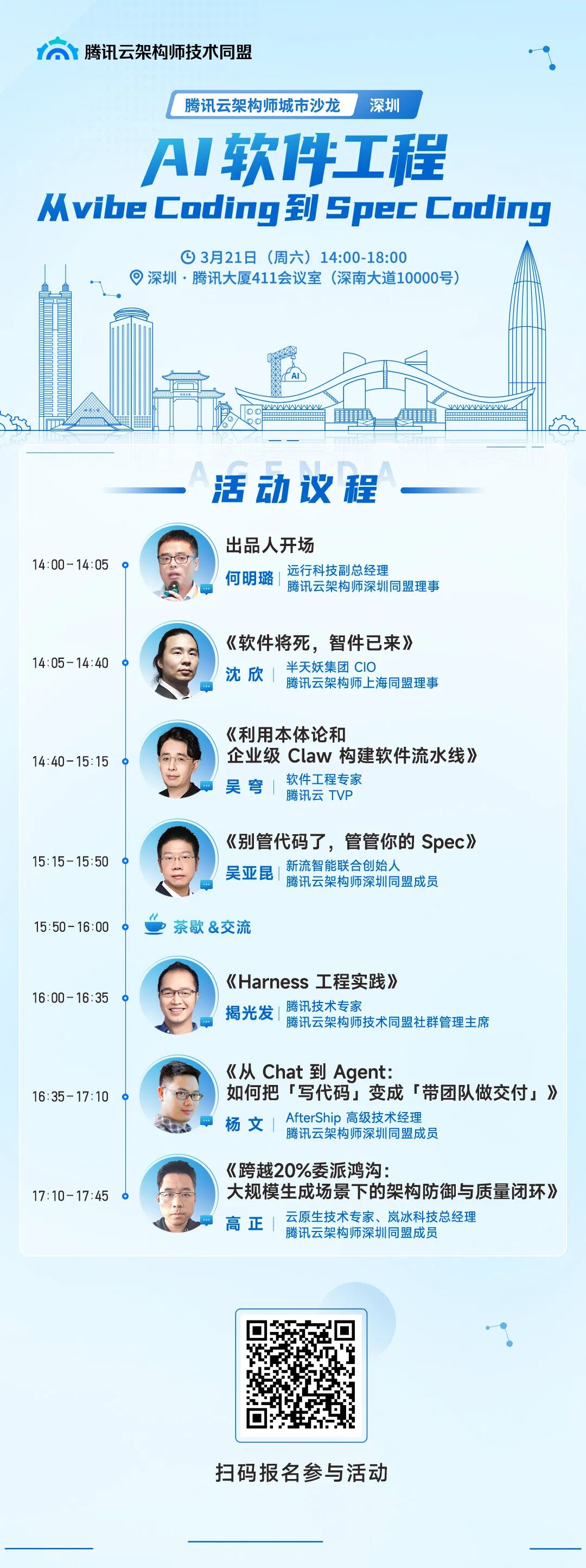 在腾讯云架构师年前的一次关于AI Agent的技术沙龙的时候,我和架构师联盟的几位理事就在讨论,年后想准备一期关于AI软件工程方面的技术沙龙,共同探讨AI编程如何从个体的技能转变为团队和组织级的核心技能。包括如何让AI编程除了做些小应用,做变更外,也能够胜任复杂系统的从0到1的全流程构建。