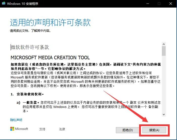 注意: 你需要有管理员权限才能运行此工具。首次运行会弹出用户协议,选择"接受"即可继续。