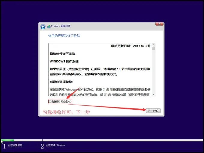 勾选"我接受许可条款",点击"下一步"。