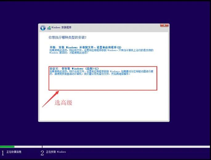 这里选择 “自定义:仅安装Windows(高级)”