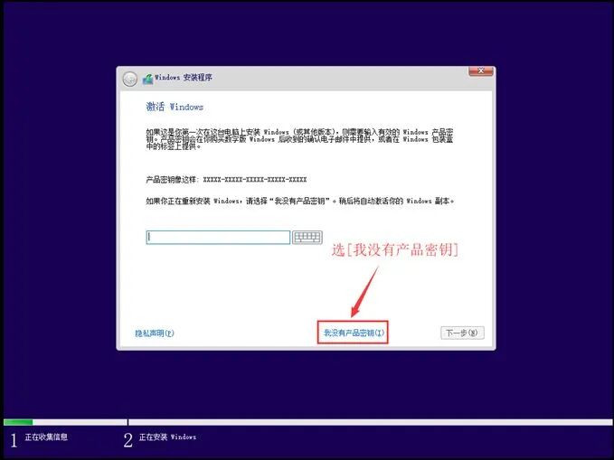 重要: 这一步选择 “我没有产品密钥”,直接跳过即可。