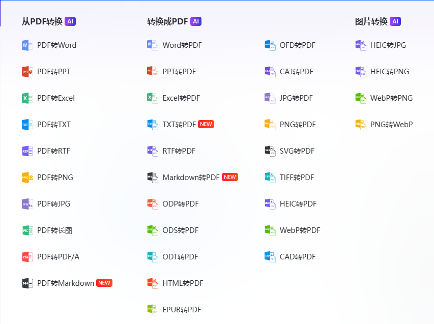 支持多文档批量转换为PDF文档,支持PDF转换为Word、Excel、PPT、OFD、图片等格式的文档。