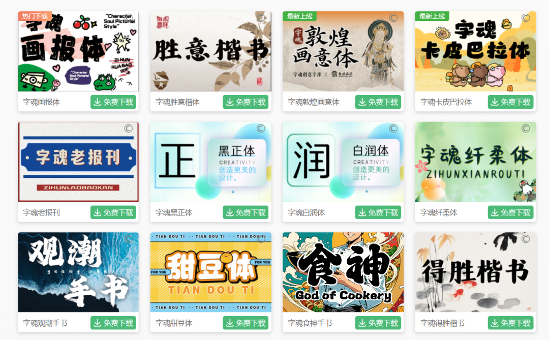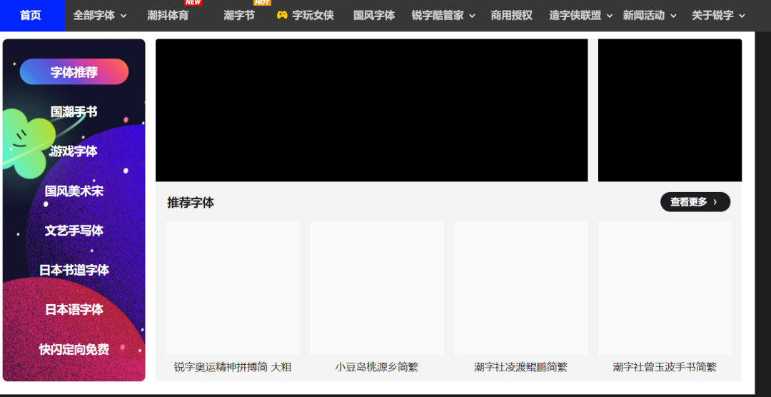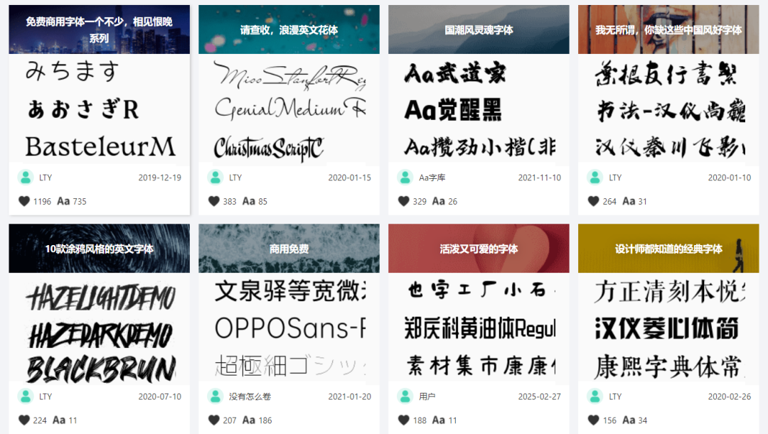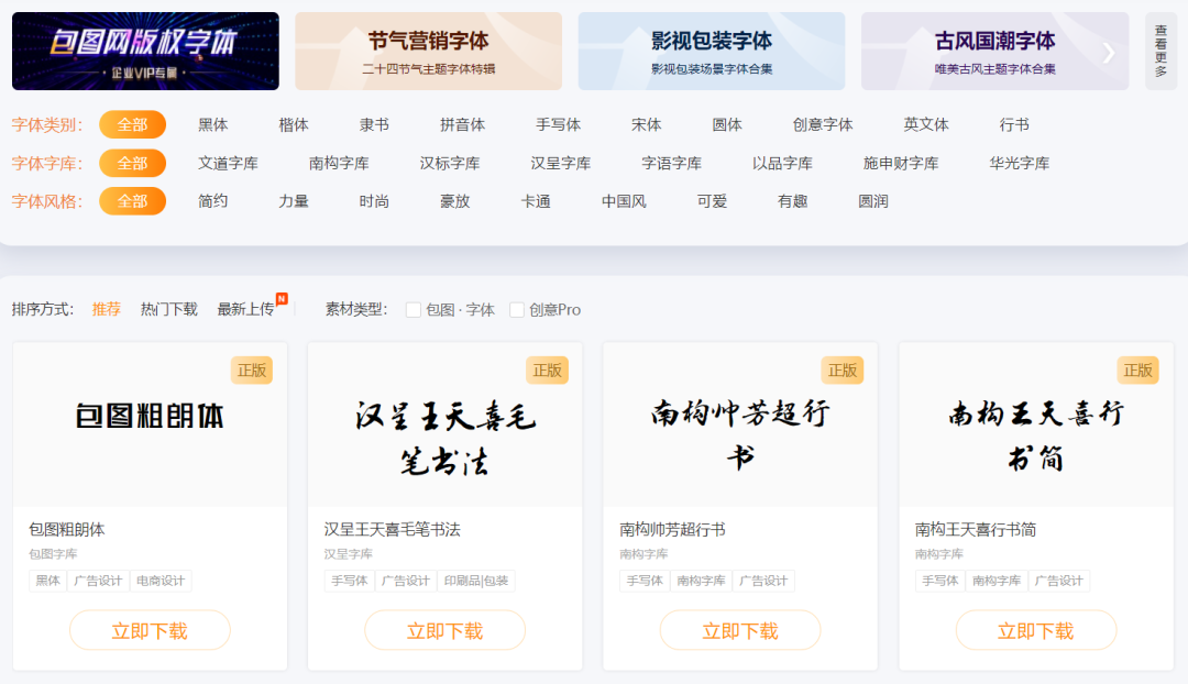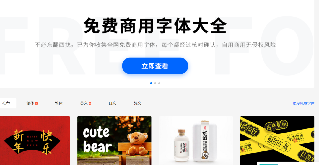 这是一个海量字体的网站,拥有各种节日、影视、国潮、古风和时尚字体, 而且字体更新的速度非常快,可以找到各种知名的字体,目前全部支持正版商用,也是2025年比较受欢迎的一个字体下载站, 有兴趣的同学可以试试看哦!