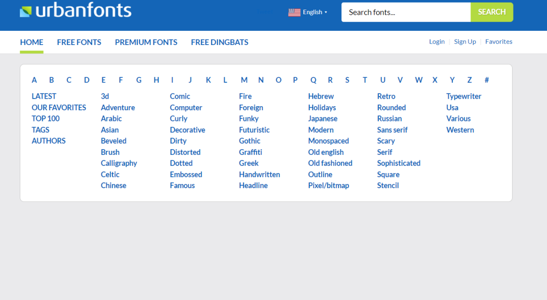 Urban Fonts 是一个国外的实用字体网站,它提供了一个非常便捷的字体筛选功能,可以根据字母和字体类型进行筛选。