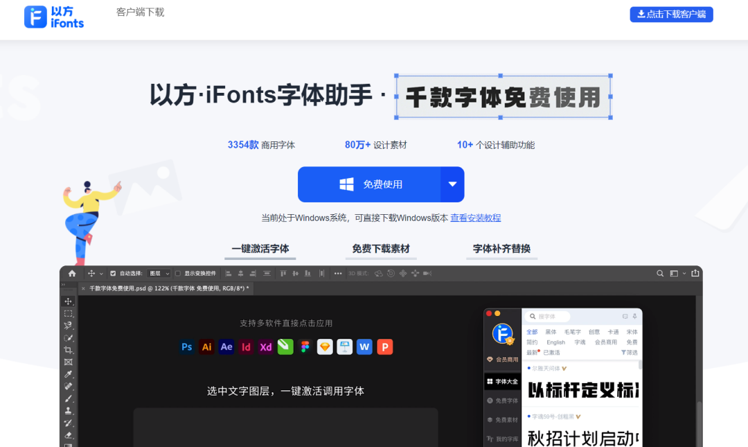 该网站提供可免费商用字体,非常适合初学者,字体种类繁多,总计约有近百种不同字体,不用注册或直接关注即可直接下载使用这些字体,具备字体版权检测功能,能够检测电脑中安装的字体是否允许免费商用。