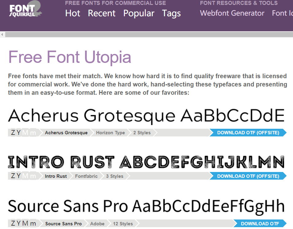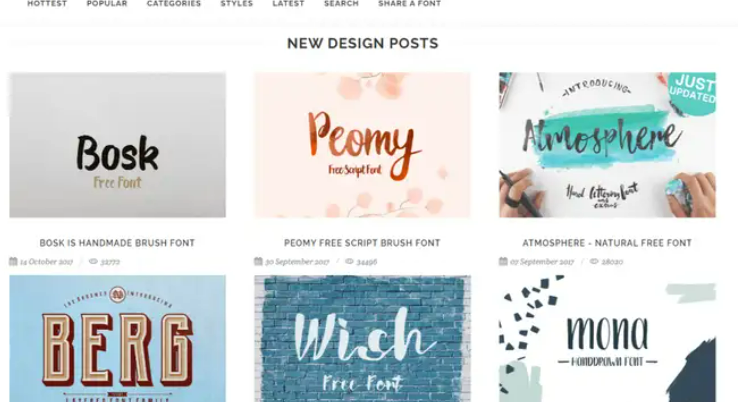 该网站拥有极为丰富的字体,字体数量高达六位数,不用注册可以自由下载所需的字体,而且字体更新的速度也是比较快哒,适合平时需要英文字体的朋友。