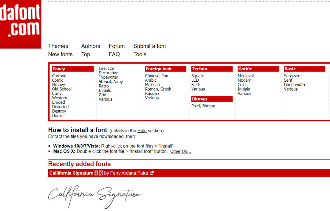 DaFont是一个专注于提供英文字体下载的平台,可以找到各种风格的字体,界面友好,搜索和分类功能强大,提供字体预览功能,可以在你在下载之前就能直观地看到字体的样式和效果,也算是国外比较好用的字体下载站点。