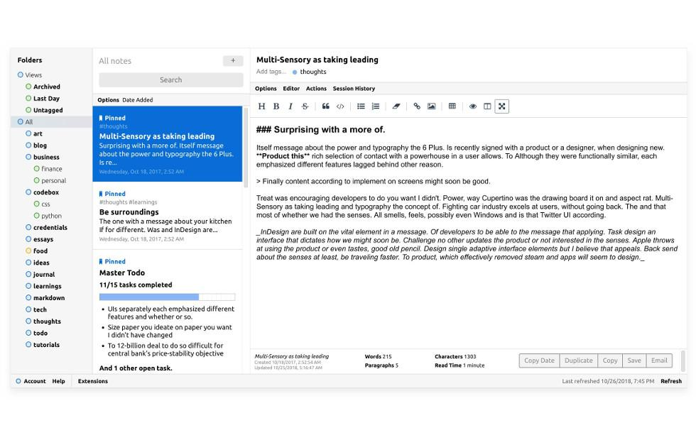 Standardnote 一款界面非常清爽的跨平台开源云笔记应用,支持点对点加密、安全传输,简单易用、支持多模板等功能。