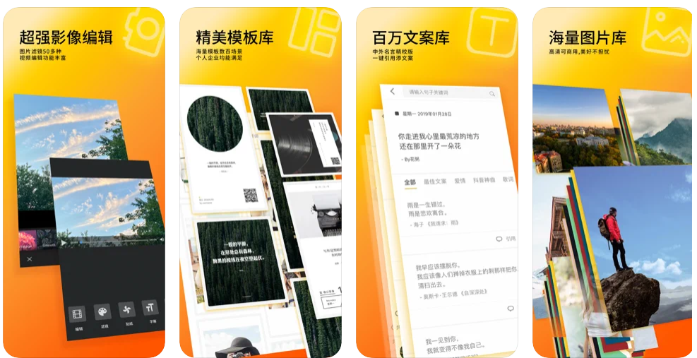 作为自媒体人,为了适当的给自己做一些宣传,总是会制作各种各样的海报,图曰里面的模板特别的多,只需要简单的替换图片,文字就能够做出一张吸引人的海报。图曰的句子库,还有各种各样的文案可以参考。