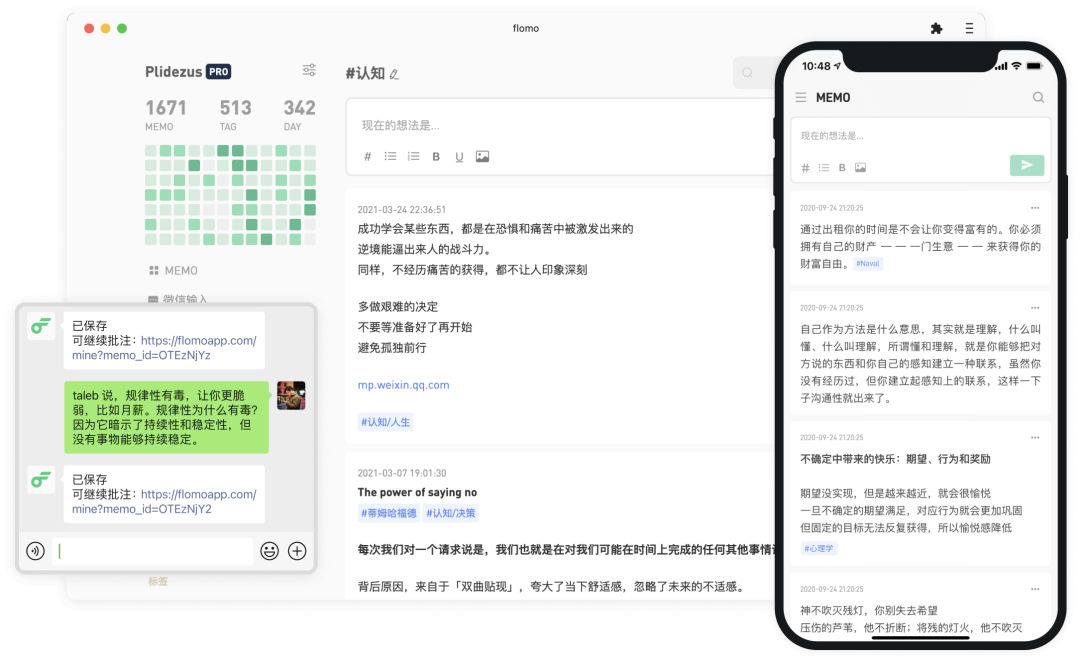 目前 flomo 已经有 iOS、Android、Mac、PWA 版、网页版五个版本,flomo 官方承诺将会在各端数据同步上永久免费。