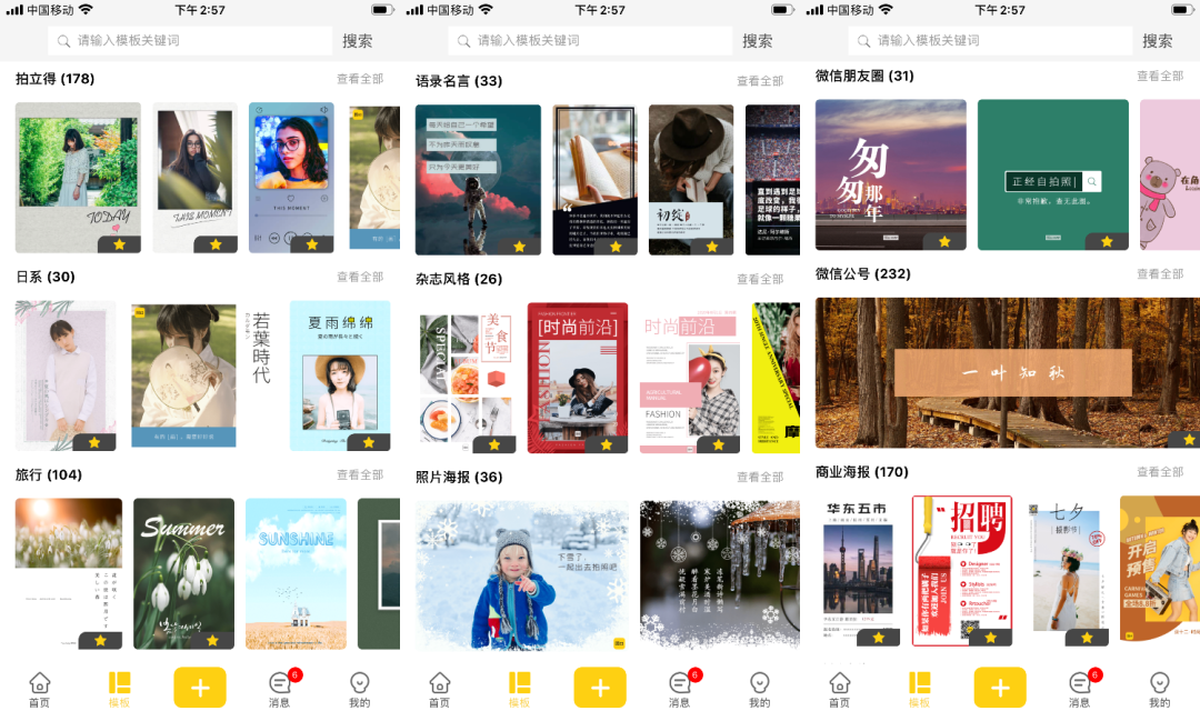 它有各种各样其他类别的模板:简历、公众号、名片、邀请函、菜谱、诗词、旅行、相框、杂志、拍立得等,对于职场小白也很适用。