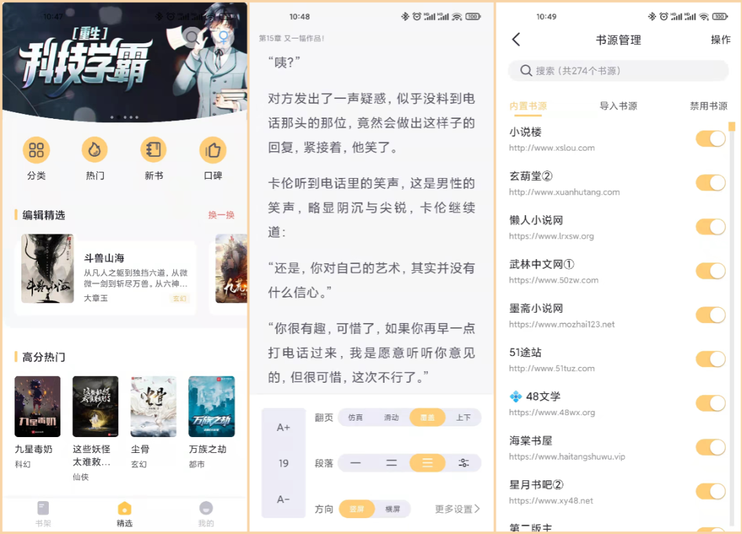 几何小说App 内置了近 300 个优质书源,基本上可以说全网所有的小说平台的资源都可以在这里看,甚至一些非常冷门或者远古的小说也能搜到。