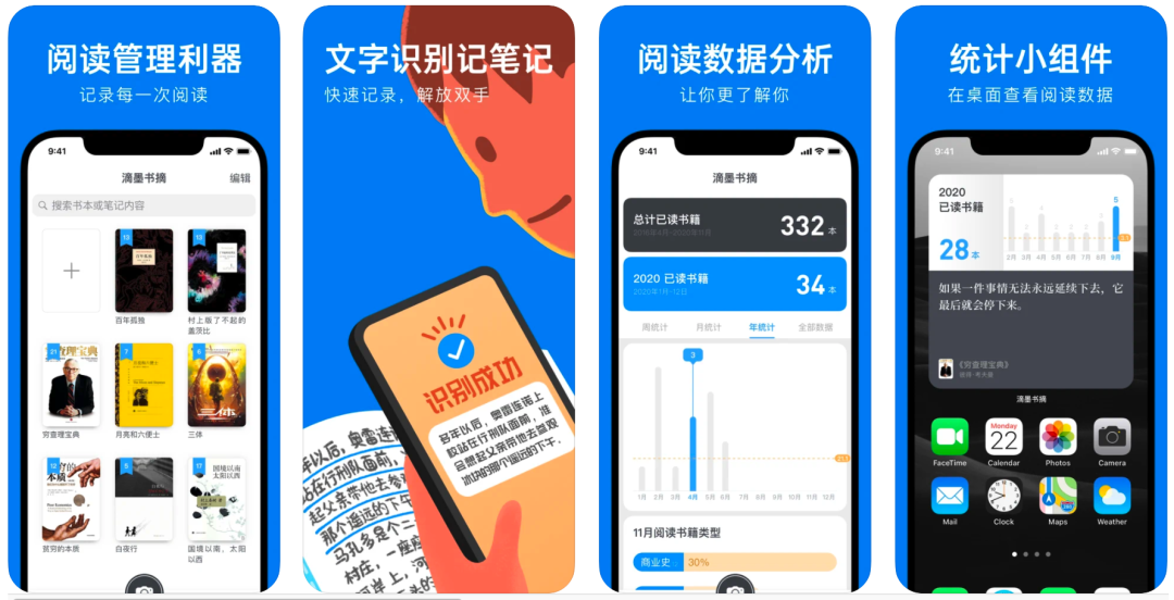 滴墨书摘App 既可以通过 OCR 识别,快速将实体书上的段落识别为可编辑的文字,免除手动输入的烦恼,同时也支持导入 Kindle 和微信读书的笔记。