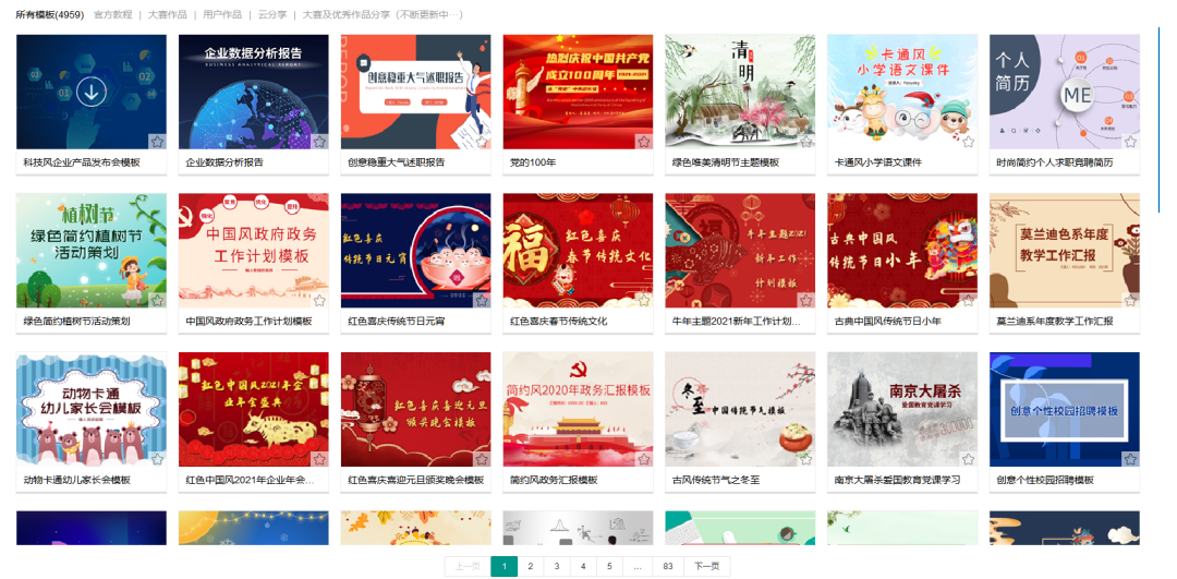 有很多类型和样式,如工作总结、论文答辩、个人简历、企业介绍、述职汇报等等,应有尽有。