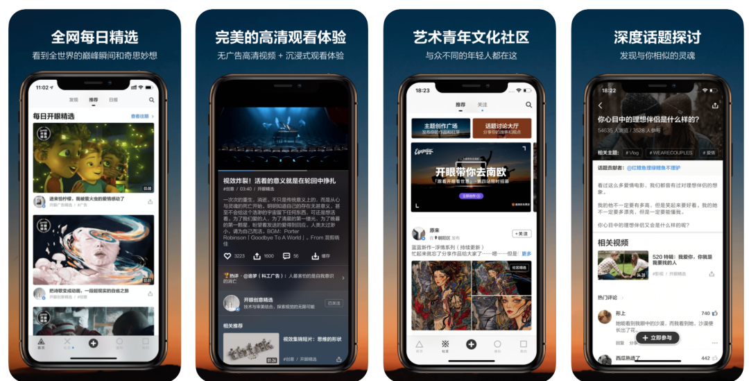 开眼App 整体给我的感觉非常好,界面简洁无广告、电影级的清晰画质,视频质量和选题非常有腔调。